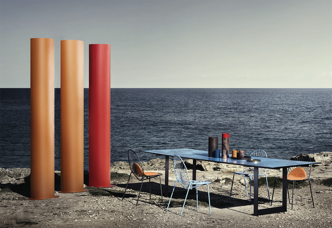 Da a beinhaltet eine Vielzahl von Stimmen im Produkt, um ein neues, stärkeres und klareres Produkt zu schaffen, das auf der flexiblen Beziehung zwischen Designer und Material - Metall, aber auch anderen Materialien - industriellen Prozessen und handwerklichem Können beim Schweißen, Biegen und Endbearbeitung basiert. Dieser Zusammenhalt verleiht dem Wert des industriellen Know-hows in Italien einen neuen Platz und einen neuen Wert: Produktionskapazität, die Suche nach neuen technologischen Lösungen und Wertschätzung für traditionelle Handwerkskunst.